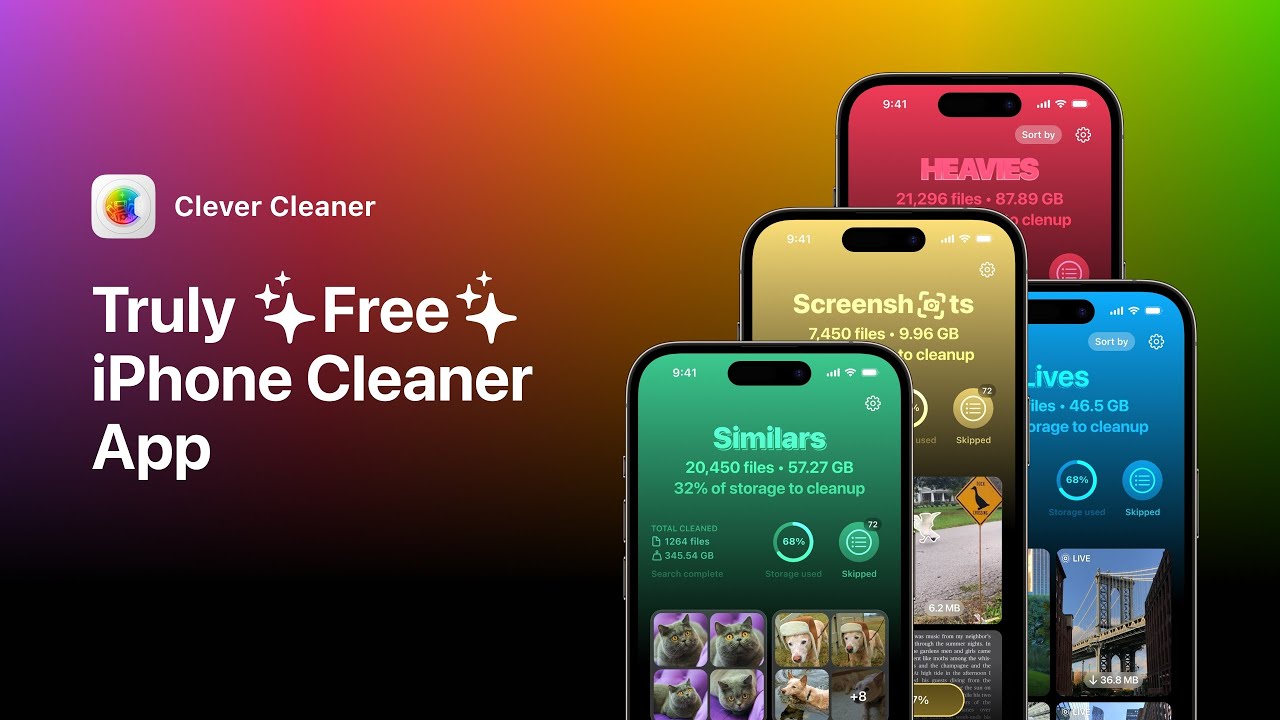 Besides deleting similar photos, Clever Cleaner can also remove screenshots, delete Live Photos while keeping their still versions, and identify large media files like videos for deletion. To look at its features, check out a detailed video review that breaks down each function.