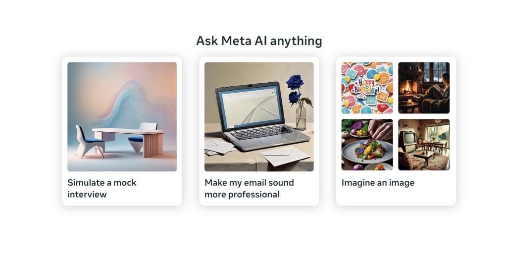 Meta recently released Meta AI, which is currently available across all Meta apps like Facebook, Instagram & WhatsApp. With it you can start chatting and request for generated images and even small animations.