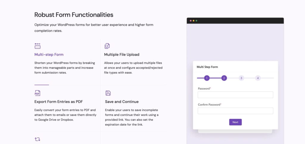The conditional logic works without heavy JavaScript overhead. Forms render as native HTML with minimal CSS. Multi-step forms, file uploads, and email marketing integrations are all supported. If you’re fully committed to the block editor workflow, SureForms feels natural in a way that older form plugins don’t.