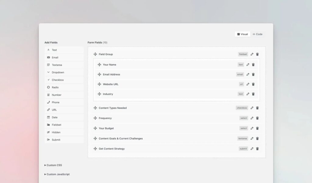 Best for: Users who want a clean, visual form building experience