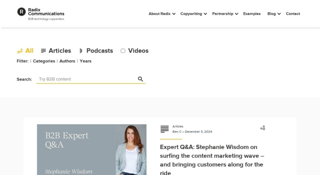 Radix Communications is a specialized copywriting blog that excels at simplifying complex B2B and technical topics. With its popular “Before & After” series, it transforms jargon-heavy material into clear, engaging copy. Although its focus is niche—mainly catering to tech and SaaS industries—this blog is essential for copywriters who need to make technical subjects accessible without sacrificing clarity plus for those who are looking to read from industry experts.