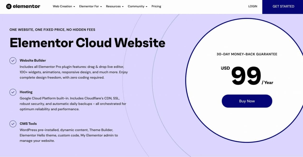 | Elementor Cloud | WordPress integration, affordable, easy-to-use interface | $129/year |