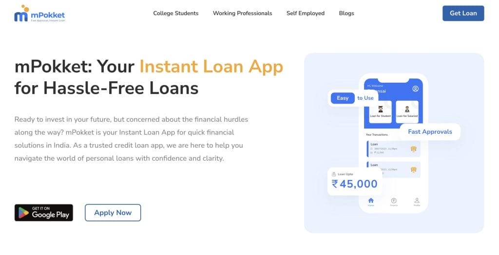 mPokket is one of the fastest loan apps that provides quick loans to students whenever they are short of pocket money or urgently require a cash loan in an emergency. It also offers four-month, short-term personal loans up to a maximum amount of ₹45,000, which is directly credited to your bank account. Students nationwide can use a legitimate college ID and address proof to avail of this loan easily.