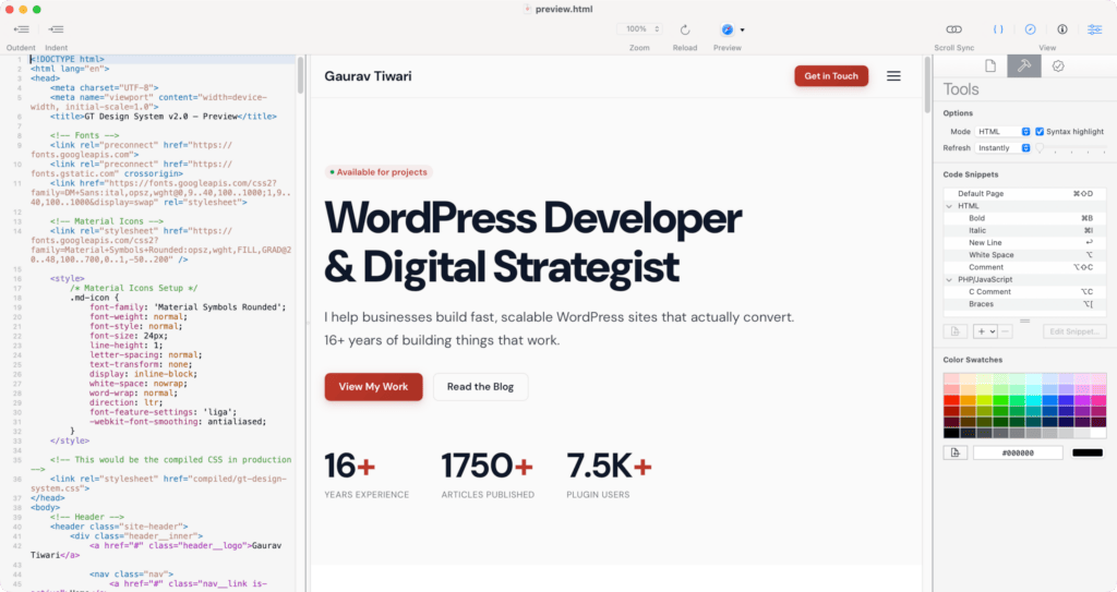 Whisk is underrated for front-end WordPress work. It’s focused on HTML, CSS, and JavaScript with live preview built in.