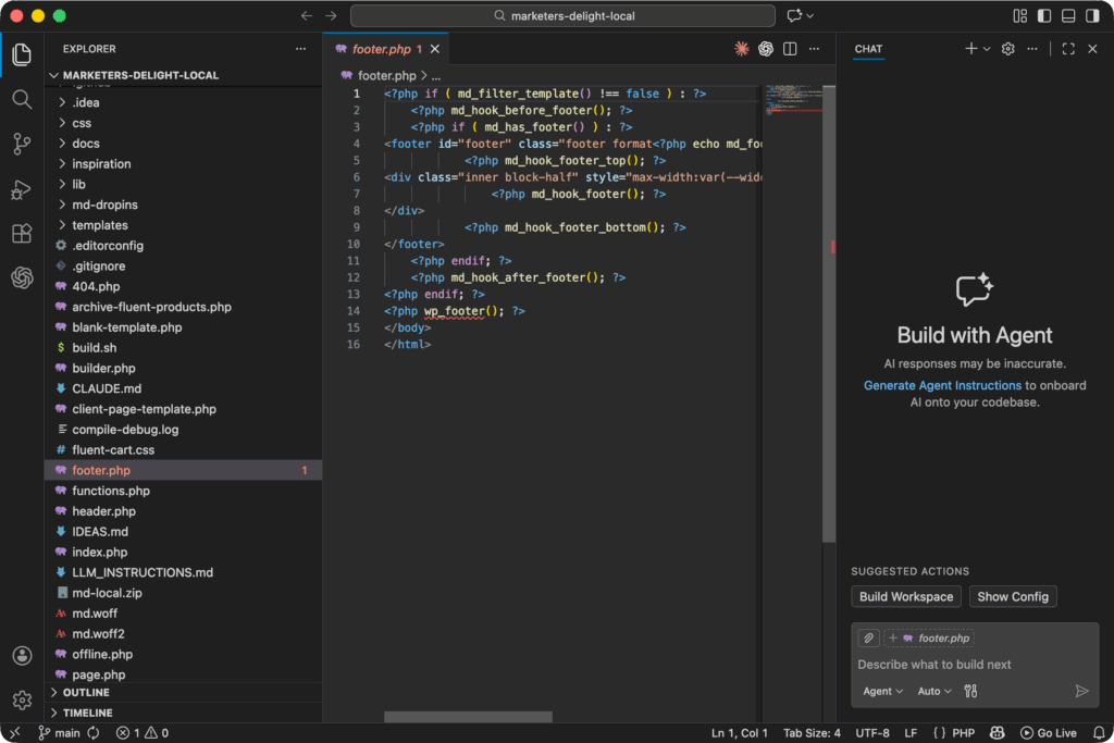 Cursor is VS Code with AI baked in. It’s not a gimmick. For WordPress development, it genuinely helps with: