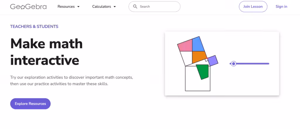 With GeoGebra, you can draw shapes, measure angles, and see how numbers change live. For educators, there’s a library of ready-made worksheets and a community full of teaching ideas. Students can learn by experimenting, which makes lessons much more memorable.