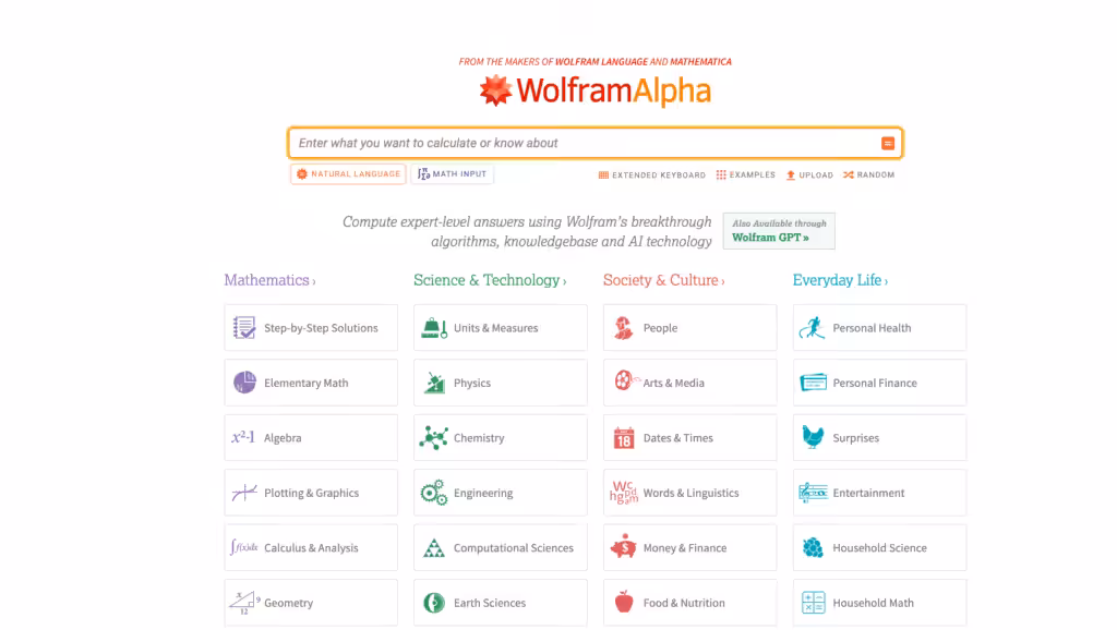 WolframAlpha handles high-level math, from integrals to differential equations, and beyond. It processes millions of queries each day, offering not just solutions but also graphs, alternate forms, and helpful details.