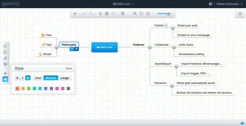 With its fantastic user interface, you can easily create mind maps, making it an excellent choice for beginners and experienced mind mappers. It also allows you to do group work with its collaborative features. This helps with teamwork and idea sharing, making it an ideal tool for group projects or collaborative learning. Another unique feature of Mind42 is that it supports multimedia integration, enabling users to enhance their maps with images, notes, and links. Overall, it is one of the best mind mapping apps out there.