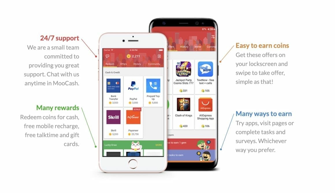 MooCash also offers free game codes and vouchers, allowing you to earn cashback on mobile recharges. You can redeem the rewards once you have 3000 coins in the app. Likewise, you can quickly sign up for this app using your Gmail or Facebook ID.