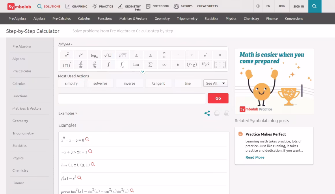 The Symbolab math solver is an efficient private math tutor that can readily solve any mathematical problem complete with steps. It is composed of more than a hundred of Symbolab’s most robust calculators, including the following: