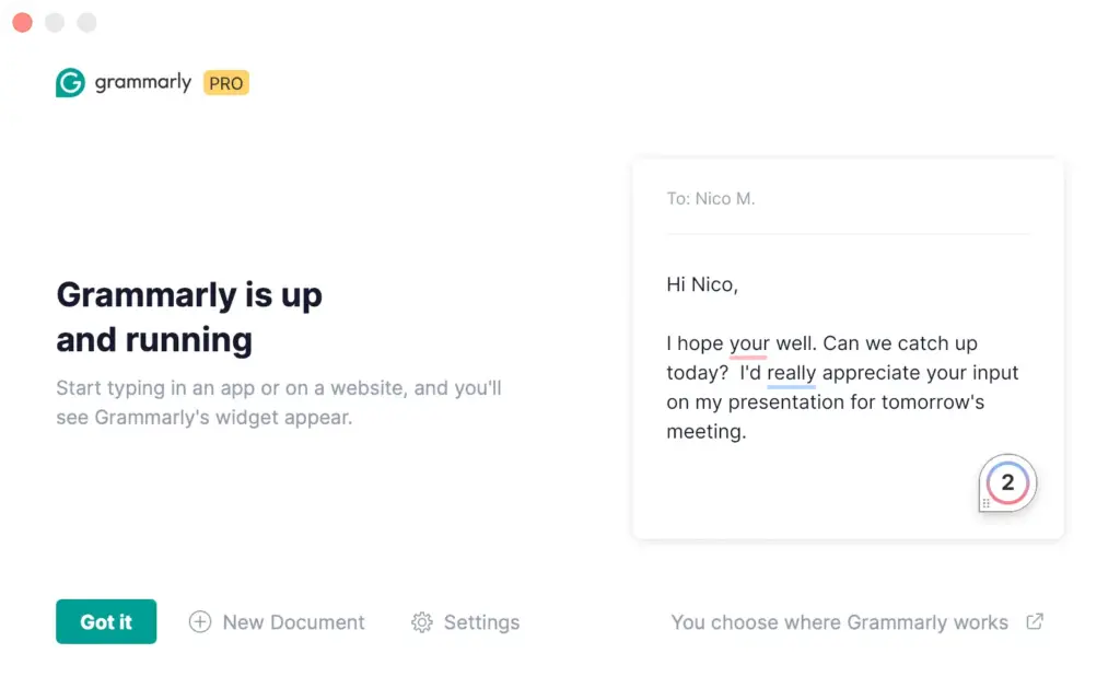 Free tier catches basic errors: spelling, obvious grammar issues, punctuation. Premium adds clarity suggestions, tone adjustments, and more sophisticated analysis. The analysis shows whether your writing sounds confident, friendly, formal, or unclear. Works across apps via keyboard or browser extension. The ubiquity is convenient.