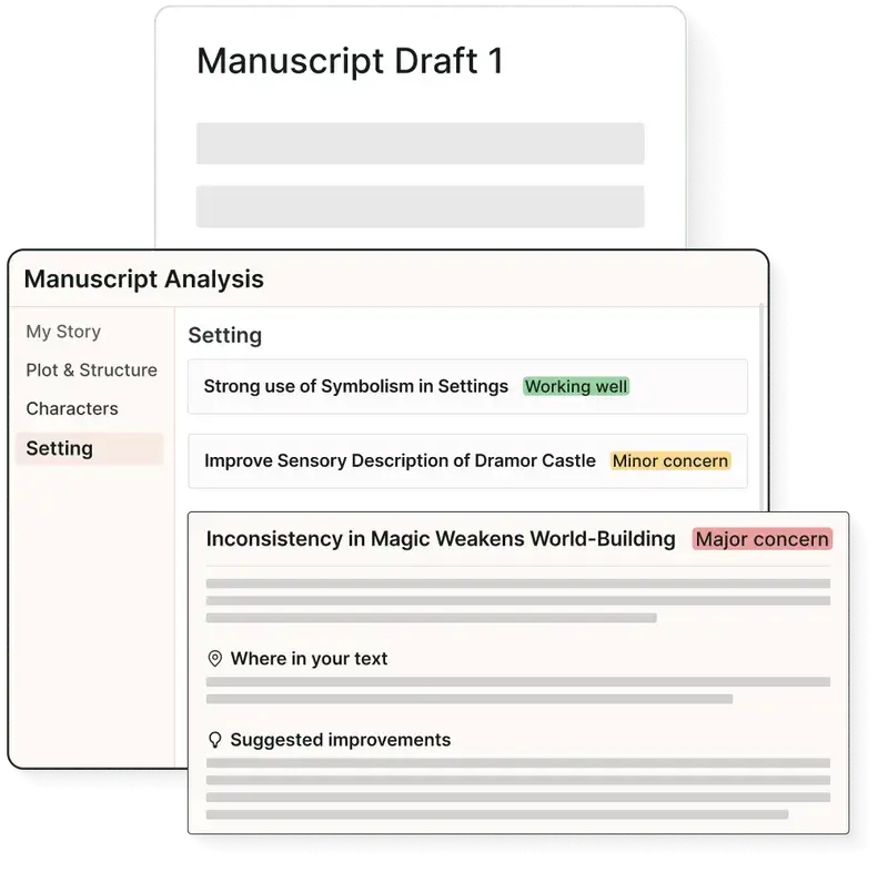- Research alongside writing: Import PDFs, images, web pages, notes. Everything for your project lives in one place. Character sketches sit next to the chapter they appear in. No switching between apps to reference your research.