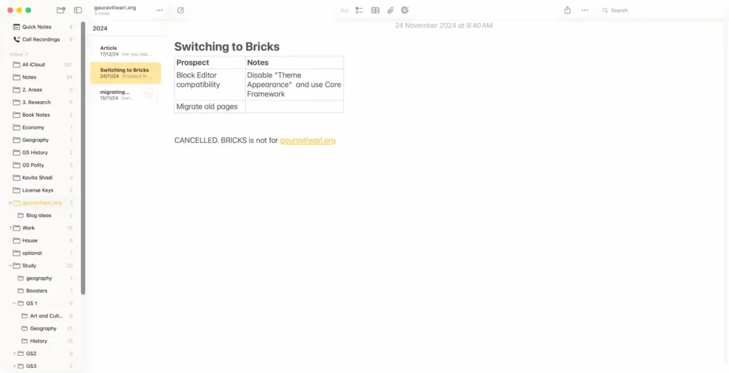 Limitations emerge with heavy usage, complex formatting, or organizational needs. No markdown support. Limited export options. Search works but isn’t powerful. But for many writers, Apple Notes is genuinely sufficient. Don’t dismiss the simple solution just because fancier options exist.