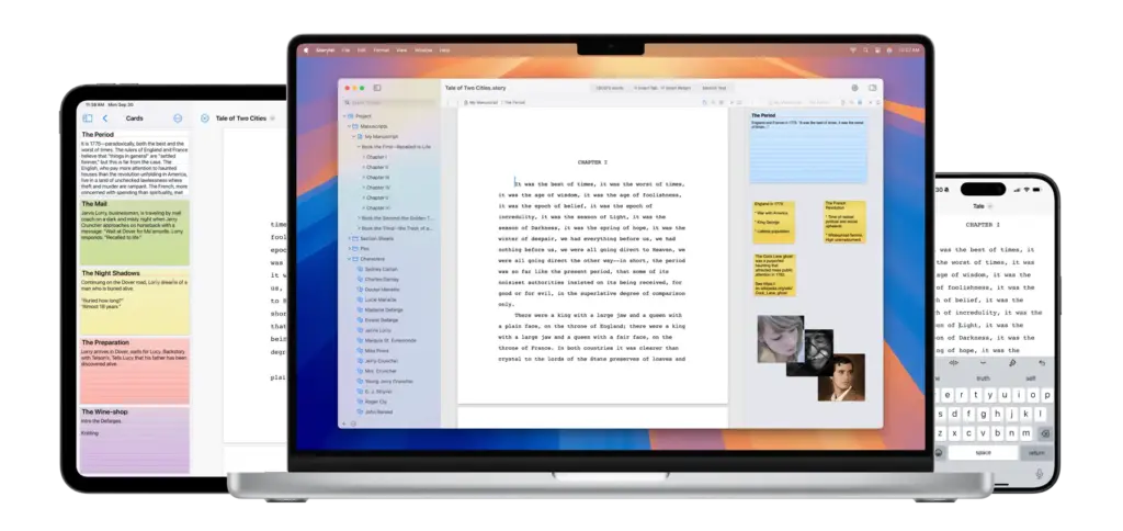 Scrivener is the standard for book writers. Nothing else comes close for managing complex long-form work. The reason is the Binder, a sidebar that treats your manuscript as a folder structure rather than one long document.