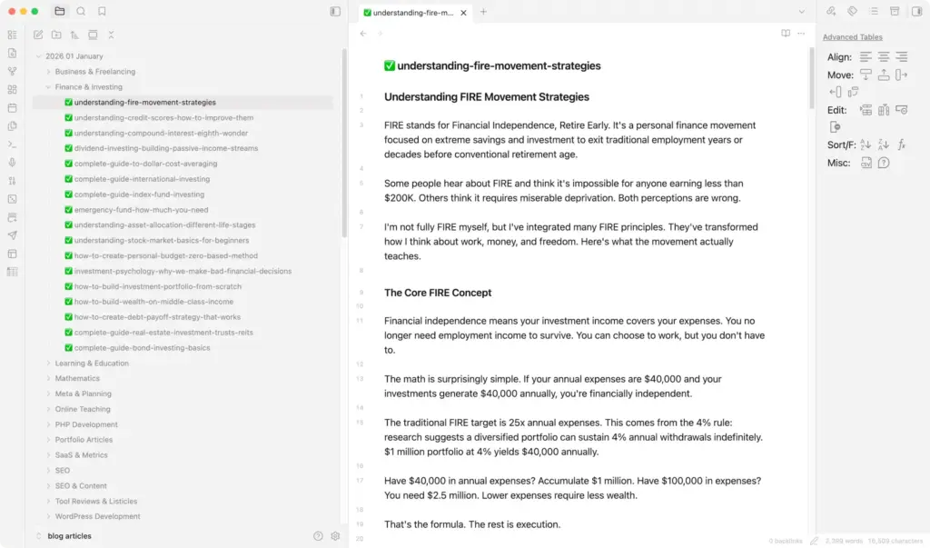 This two-app system works because each tool does one thing well. Obsidian handles thinking and organizing. Typora handles clean final output. No single app does both perfectly.