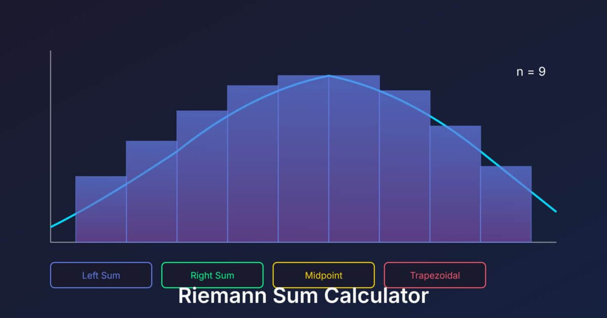 Use this free Riemann Sum Calculator to approximate definite integrals using left, right, midpoint, or trapezoidal sums. Enter your function, set the bounds and number of subdivisions, and see the numerical approximation, error analysis, and an interactive visualization of the rectangles.