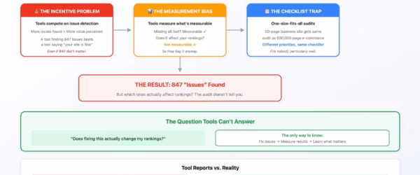 Run any site through Screaming Frog or Semrush and you'll get hundreds of issues flagged. Most of them don't matter.…