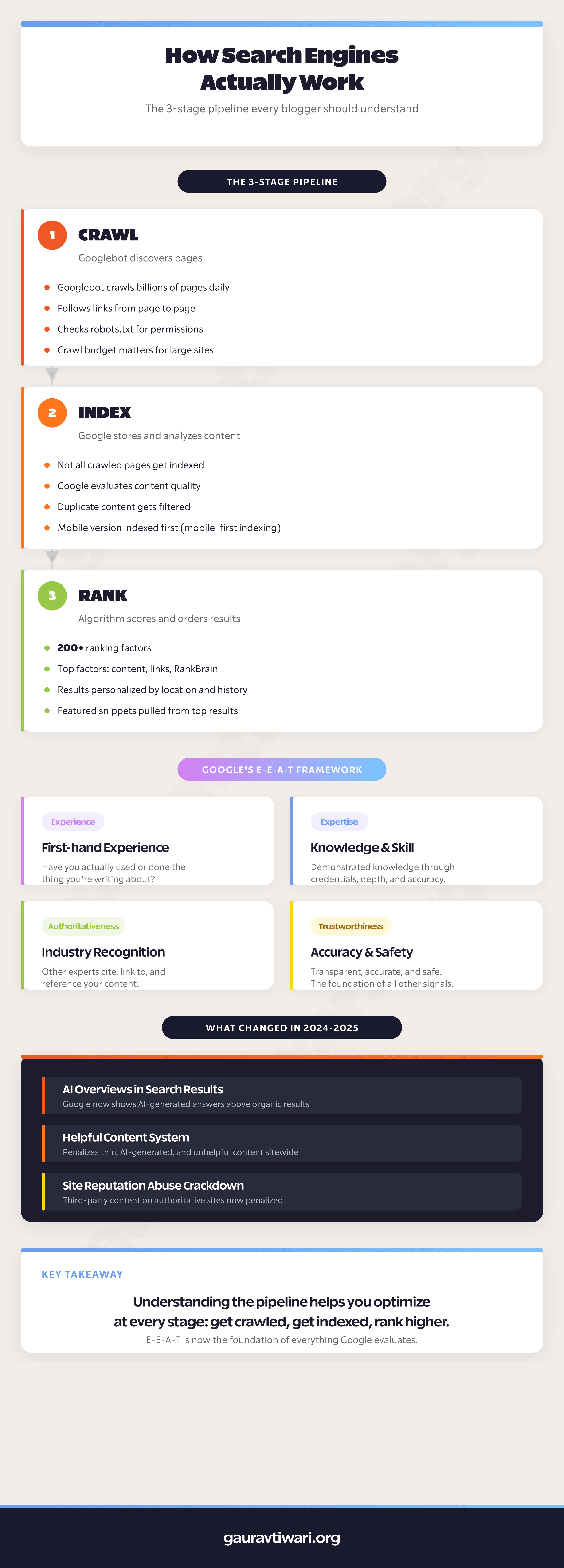 That changed when I actually understood what happens between someone typing a query and seeing results. Once I knew how the machine worked, I stopped guessing and started engineering outcomes.