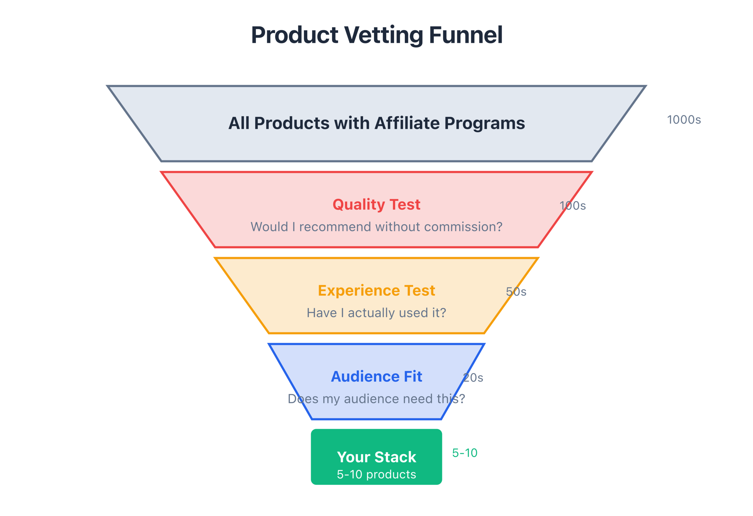 I use a funnel approach to narrow down which products deserve my time and reputation. Here’s how it works.