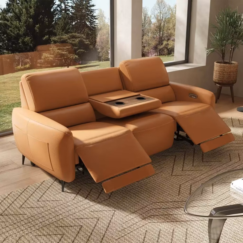 With its wall-hugger design, built-in table, and ergonomic support, this sofa perfectly blends convenience and comfort. It’s ideal for families and professionals who want functionality without sacrificing style.