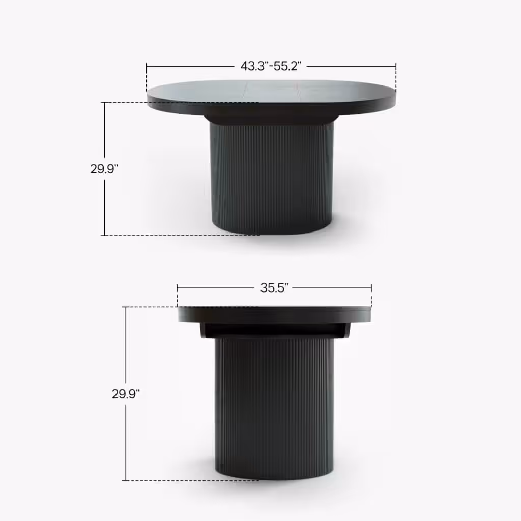 This table morphs from a cozy round table into a larger oval with a hidden extension panel. The transformation is effortless, giving you extra seating when needed and saving space when you don’t. A rock-solid base ensures stability, while the rounded edges prevent bumps and bruises. Anti-slip foot pads protect your floors and keep the table firmly in place.
