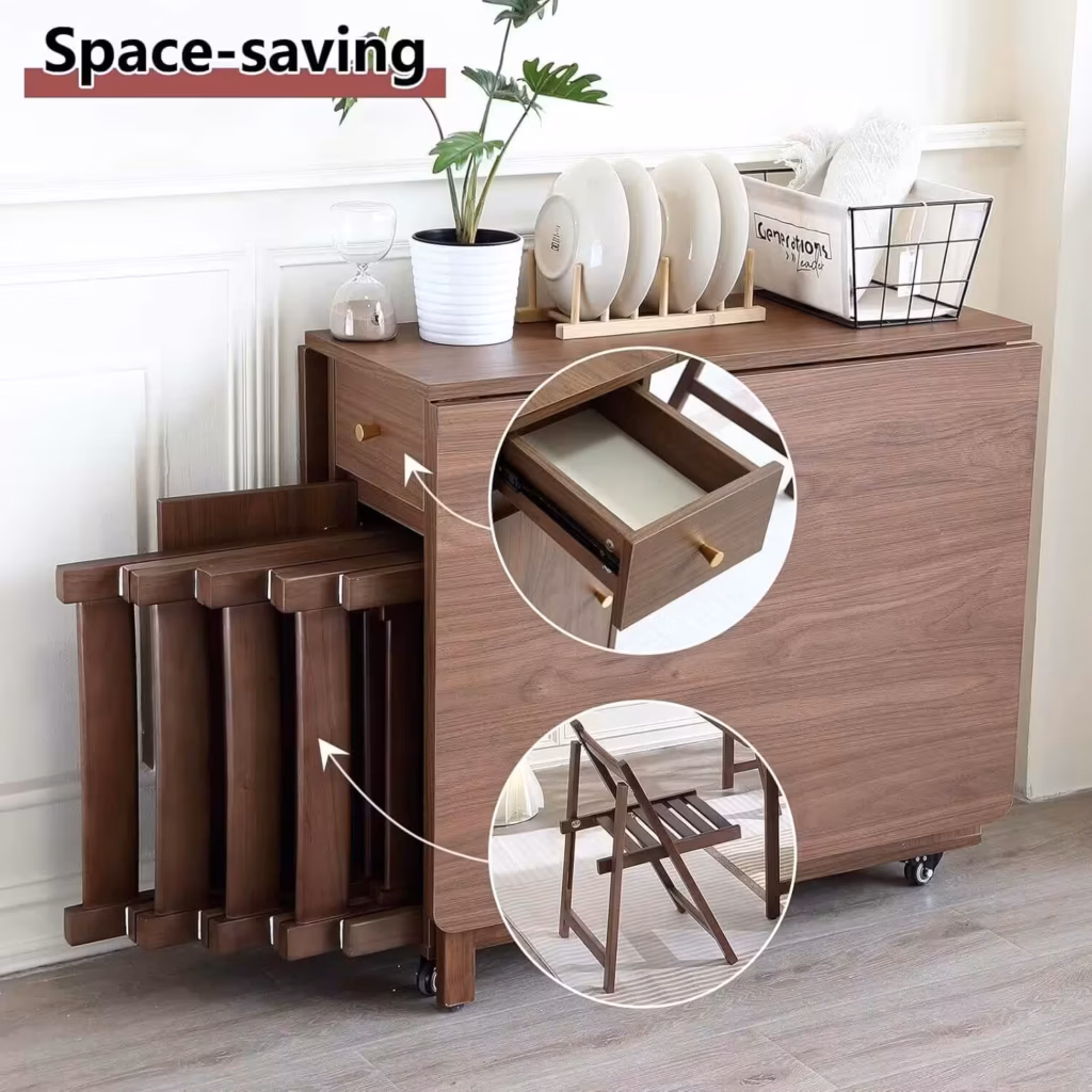 Perfect for small spaces: City apartments, tiny homes, and multipurpose rooms all benefit from this foldable wonder. It’s ideal for work-from-home setups that transform into dining areas at night. You’ll appreciate how it keeps clutter hidden while staying effortlessly stylish.