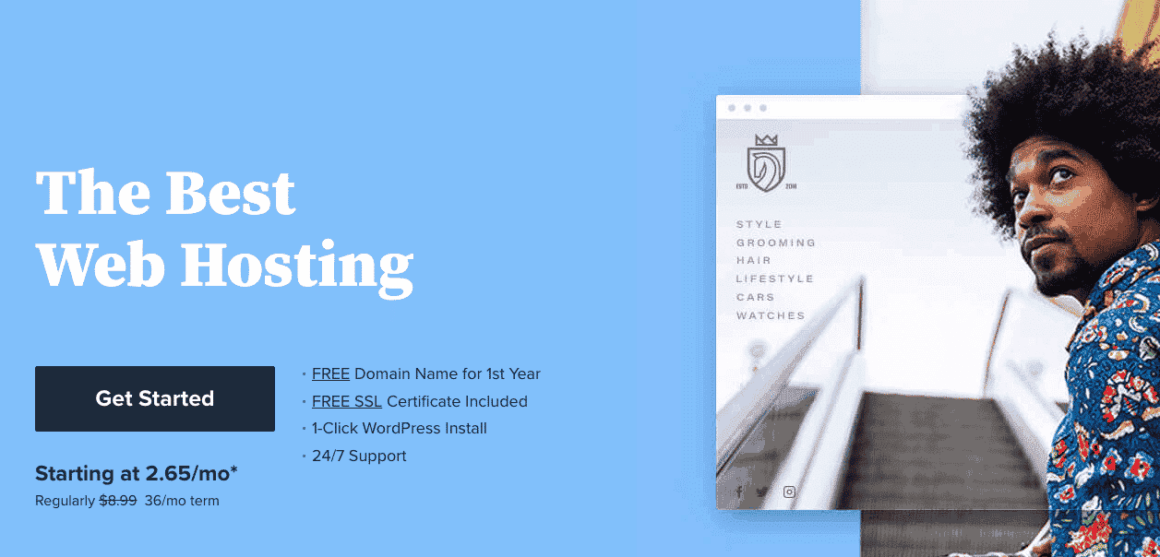 The initial cost of Bluehost hosting plans is US$2.65 per month (original cost is US$9.95). It comes with a free domain name and website building programme. You can install WordPress, Joomla, Drupal and other website building tools on the cPanel with one click. Bluehost is said to be the best choice for newbies too. Bluehost’s basic package includes 50GB of storage space and unlimited bandwidth.