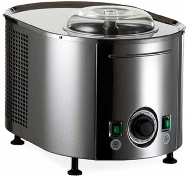This is a fully automatic frozen yogurt, sorbet, and ice cream maker. The brushed stainless steel housing and duty motors.