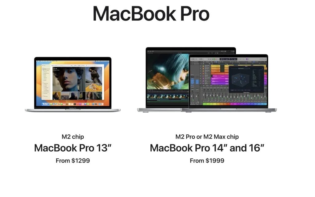 The Pro model comes with extra GPU, power and better M2 processors called M2/M2 Pro and M2 Max.