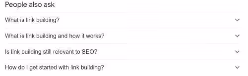 Here you can see the “People Also Ask” section which consists of some highly searched questions related to link building which you can use in FAQs.