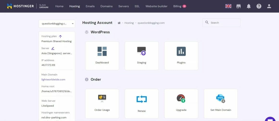 It has a bunch of good things, such as cheap pricing, SSD storage, LiteSpeed servers, free domain, SSL, custom-made hPanel, etc.