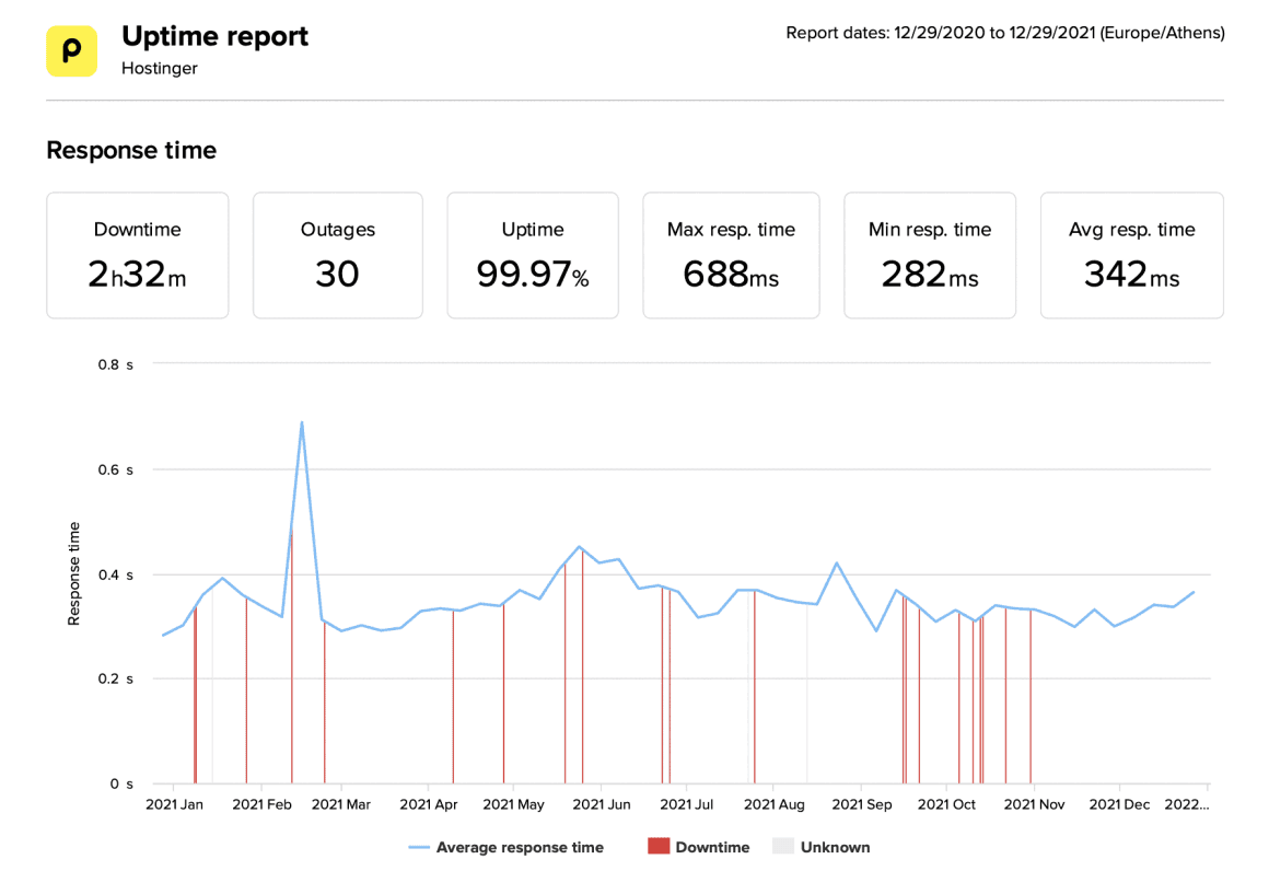 You can see this uptime report of Hostinger hosting, which clearly reveals there are irregularities in the uptime of this web host.