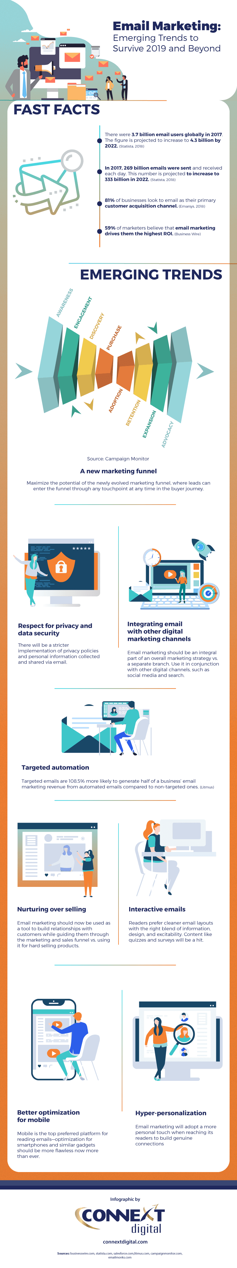 Email marketing is an ever-changing subject. So make sure that you stay updated with the trends and don’t fall over to get outdated. This infographic by ConnextDigital can help you a lot with that.