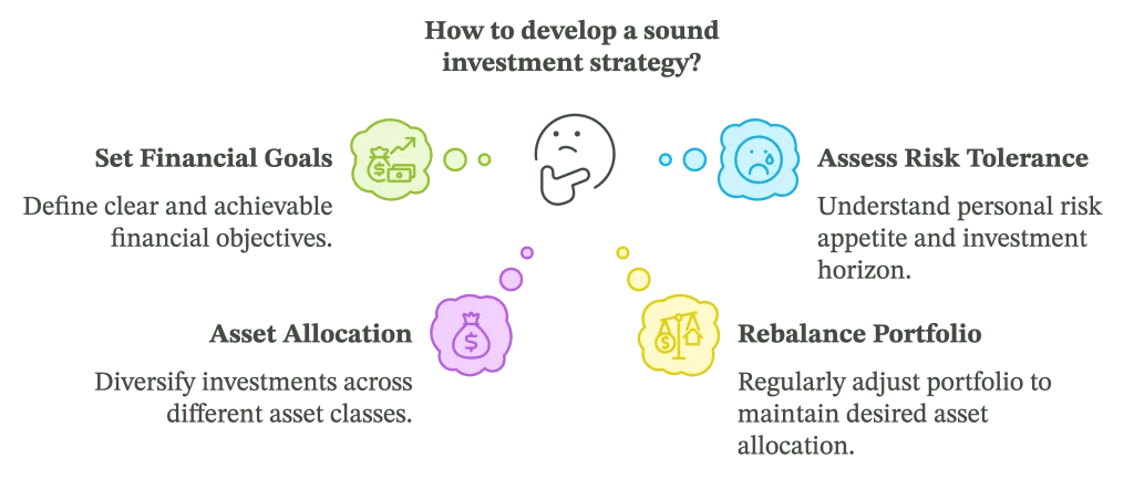 Once you have a firm grasp of the types of investments available, you must develop a coherent investment strategy that aligns with your financial goals and risk tolerance. It is essentially a plan for allocating your assets among various types of investments in order to achieve specific financial objectives.