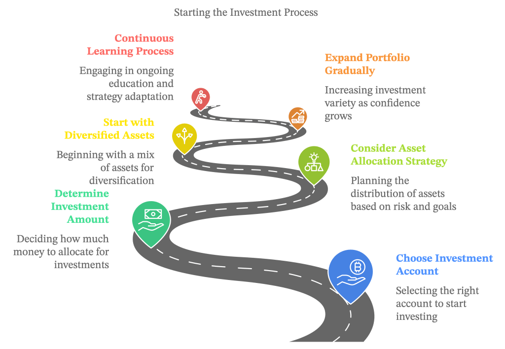 Next, consider your asset allocation strategy based on your risk tolerance and financial goals. Experts typically advise people to start by investing in a diversified mix of assets that align with their respective strategies. Many beginners find it helpful to start with low-cost index funds or ETFs, which provide instant diversification and exposure to the overall market.
