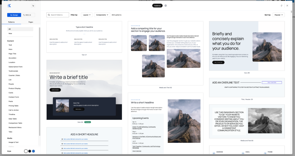 I’ve also used Kadence on projects with tight deadlines. When I need a services page live by tomorrow and don’t have time to build custom layouts, Kadence’s design library saves me. Import a section, swap the content, adjust the brand colors, ship it.