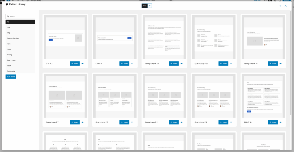 Last but not the least, the collection of GenerateBlocks Patterns in the library is a must use.