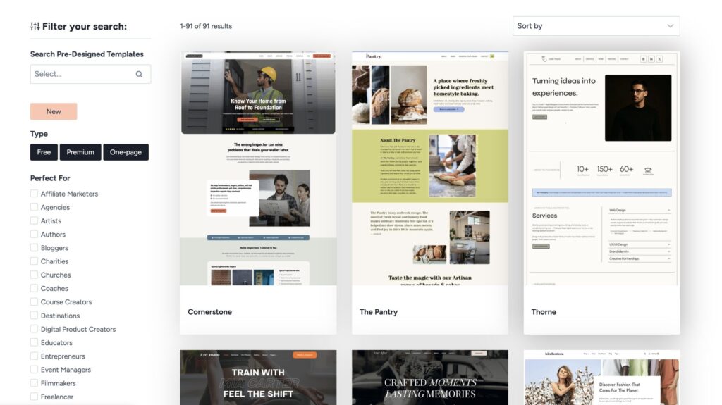 The template library isn’t as extensive as Astra’s, but the quality is solid. Each template is built for the block editor, not Elementor, which means better performance.