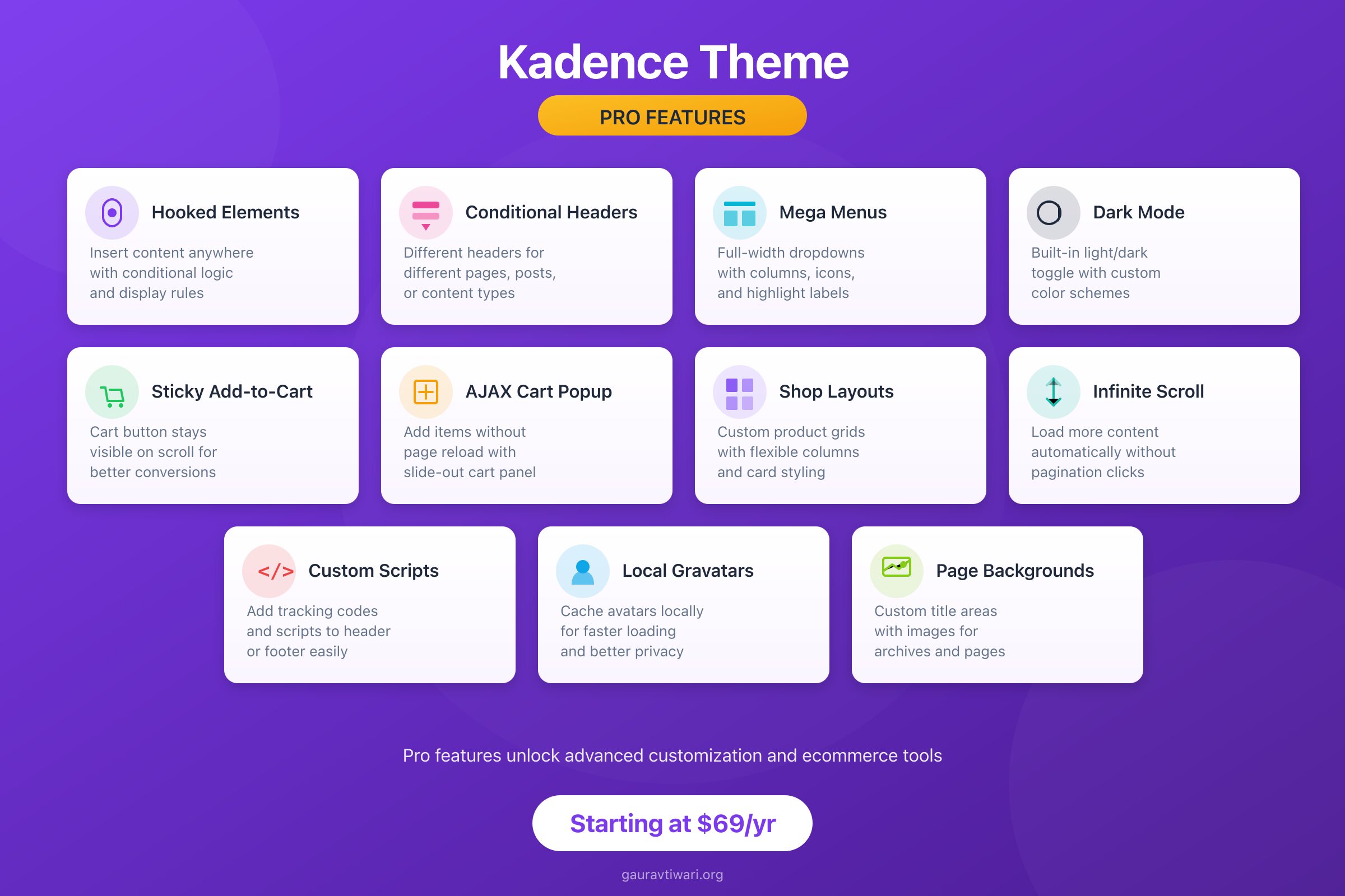Kadence is one of the best themes for WooCommerce. The free version handles basic store styling. Kadence Pro adds sticky add-to-cart, AJAX cart popups, custom shop layouts, and product gallery options that directly improve conversions.
