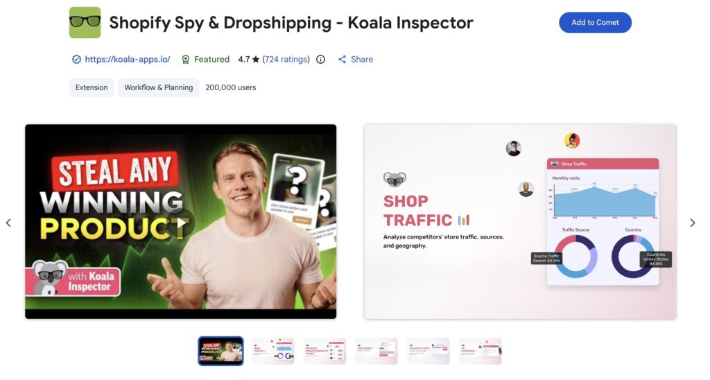 Koala Inspector is a Chrome Web Store verified extension with 200,000+ users. It runs in your browser and reads publicly available data from Shopify storefronts. It doesn’t access private store data, admin panels, or customer information.