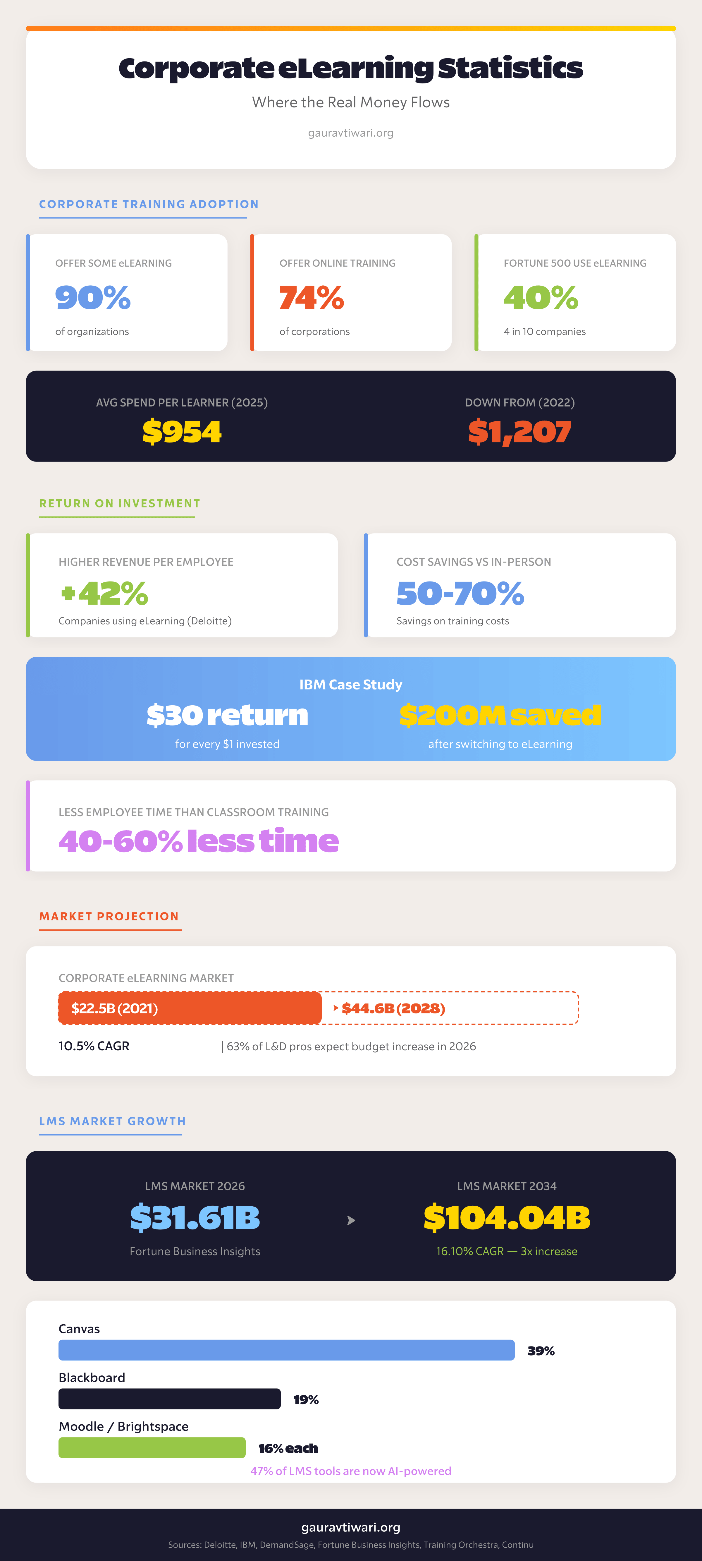 - The global eLearning market is projected to reach $320.96 billion in 2026 (The Business Research Company).