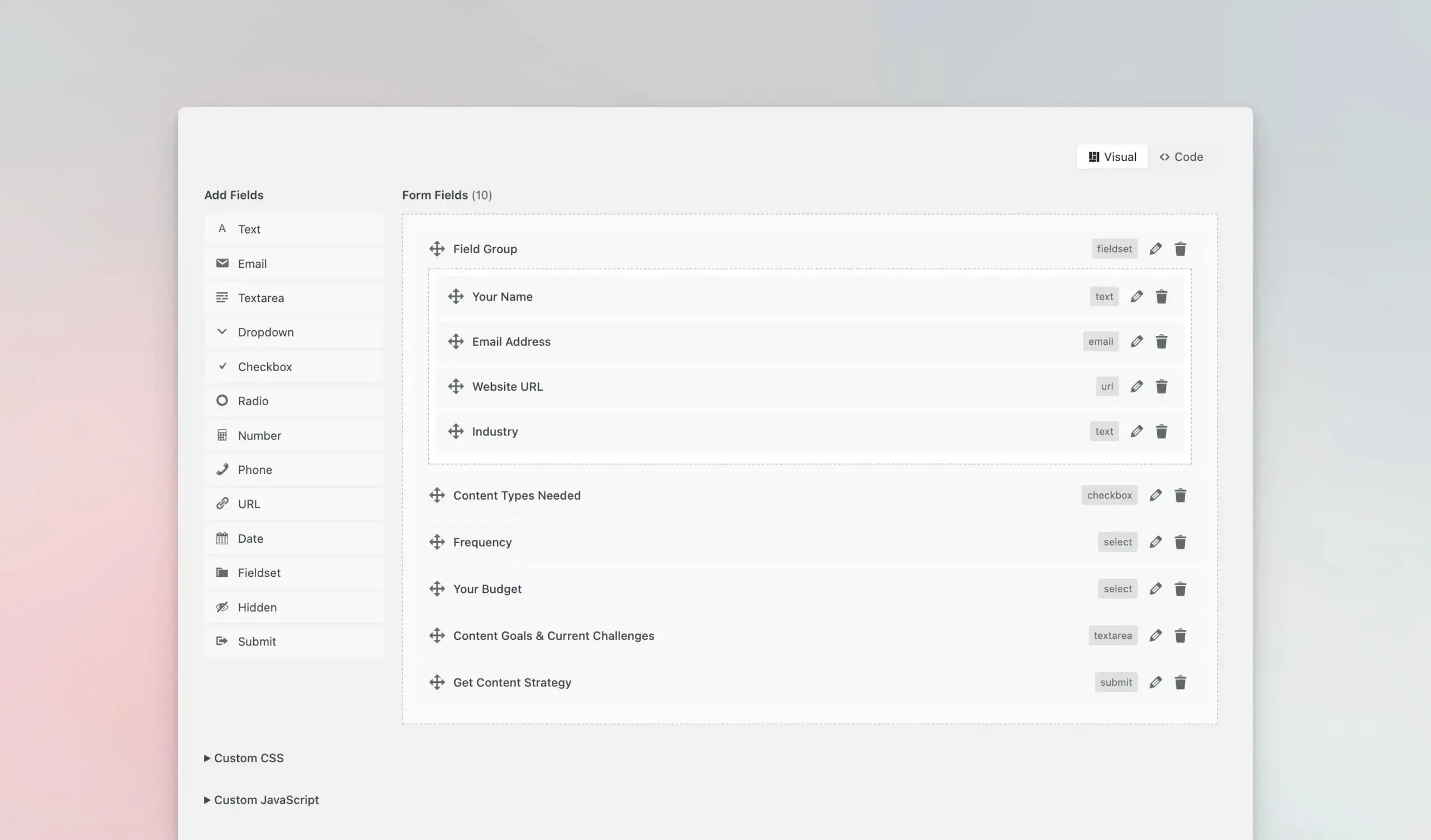 You know the drill. Install a form plugin. Get a drag-and-drop builder you didn’t ask for. Watch it generate 47 nested divs, inline styles, and class names that look like someone mashed their keyboard.