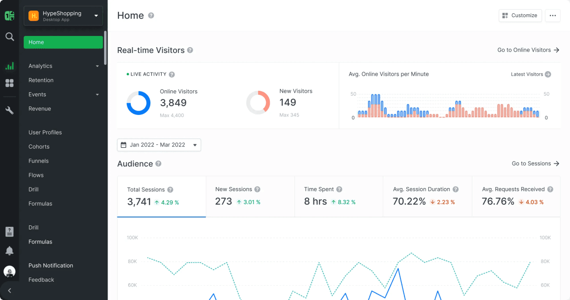 Key Features: Auto tracking, Real time data analysis, precision segmentation, Event tracking