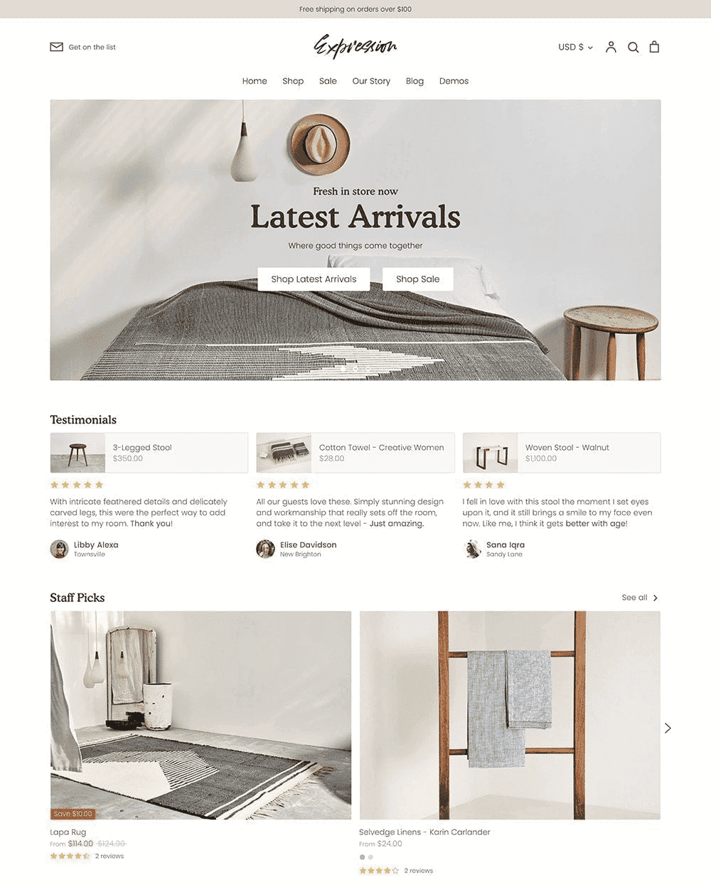 Shopify theme store contains over 100 free and paid themes. As Shopify is a dedicated eCommerce platform, they offer very polished themes and an easy selling process. But their pricing is way higher than that of WordPress themes.