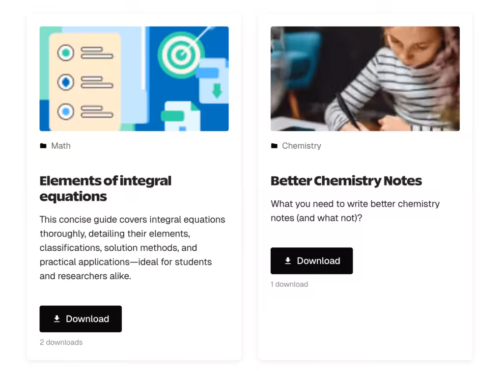 Build an educational resource center with downloadable worksheets, templates, and tools.