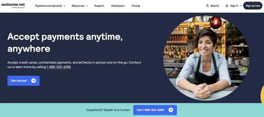 Ideal for small businesses that want customizable payment solutions, Visa’s Authorize.Net allows you to accept payments from a variety of methods, including credit cards, e-checks, and digital wallets. It integrates easily with third-party merchant accounts, offering flexibility for businesses that want more control over their payment processing.