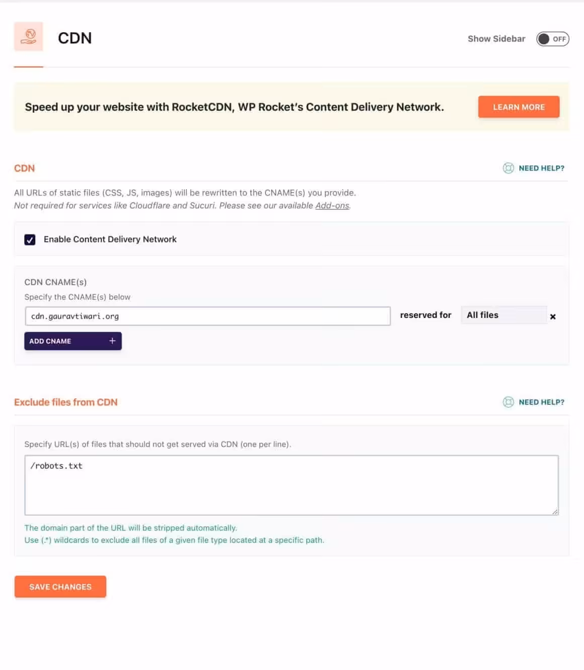 In the CDN tab, you can easily connect any CDN with your WP Rocket plugin.