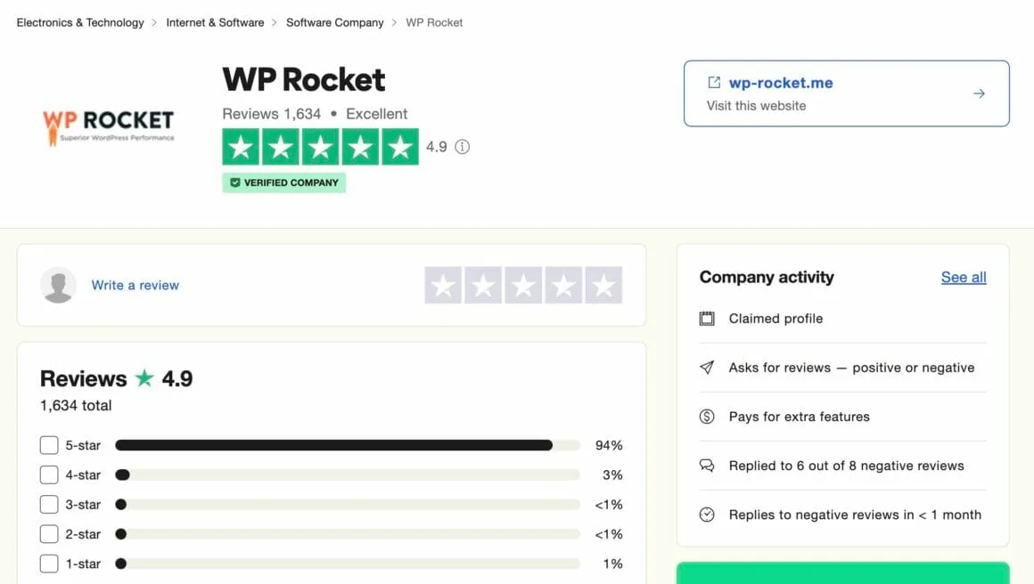 In total WP Rocket has got more than 1600s reviews on Trust Pilot and has got 4.9 stars out of 5 which is quite amazing.